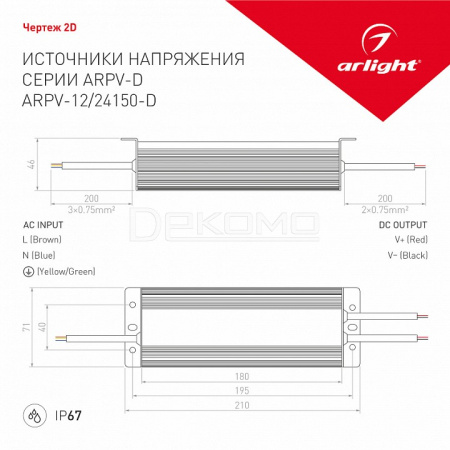 Блок питания с проводом ARPV 150Вт 12В 026435
