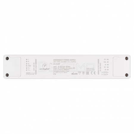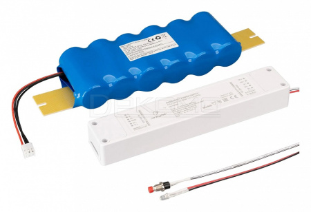 Блок аварийного питания с гальванической развязкой для светильников и мощных светодиодов. Входное напряжение 220-240 VAC. Выходное напряжение: 220-300 VDC (подстраивается под блок питания). Допустимая мощность нагрузки: 76Вт. Встроенный PFC >0.91. Негерметичный пластиковый корпус с внешней аккумуляторной батареей LiFePO4 (поставляется в комплекте) IP 20. емкость батареи 6000 мАч, напряжение 9.6В, мощность заряда батареи 80Вт, время работы от АКБ до 1 ч в зависимости от нагрузки. Габаритные размеры блока питания длина 214 мм, ширина 41 мм, высота 27мм, габаритные размеры АКБ длина 278мм, ширина 73мм, высота 36мм. Гарантийный срок 3 года.