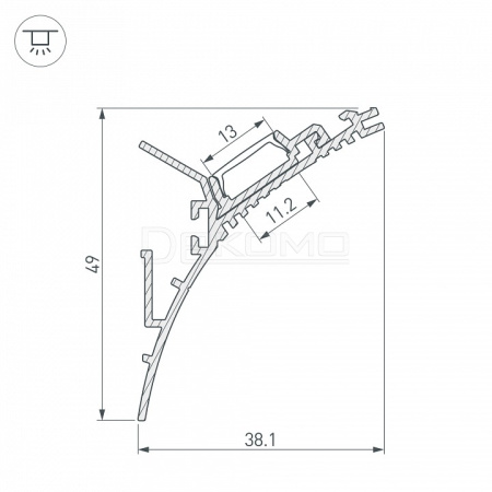 Алюминиевый анодированный профиль для подсветки стен и потолков. Штукатурка наносится сверху, делая профиль невидимым. Состоит из двух частей - основания и профиля для светодиодной ленты. Ширина площадки для ленты 14 мм. Экраны, заглушки и другие аксессуары приобретаются отдельно.