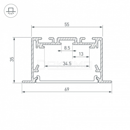 Алюминиевый анодированный профиль для светодиодных лент и линеек. Для использования с гибким экраном SL-Seamless (поставляется в рулонах). Ширина площадки для ленты 34 мм. Экраны, заглушки и другие аксессуары приобретаются отдельно.