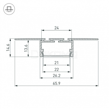 Алюминиевый профиль для светодиодных лент и линеек, встраиваемый в гипсокартон толщиной 12 мм, под строительную отделку. Позволяет создать линию света шириной 22 мм. без видимых частей алюминия. Монтируется между двумя листами гипсокартона. Ширина площадки для ленты 24 мм. Экраны, заглушки и другие аксессуары приобретаются отдельно.