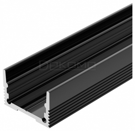 Алюминиевый анодированный профиль для светодиодных лент и линеек. Цвет - черный RAL9005 (порошковая окраска). Габаритные размеры (L×W×H): 2000x20x13 мм. Ширина площадки для ленты 15 мм. Экраны, заглушки и другие аксессуары приобретаются отдельно.