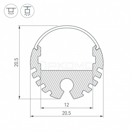 Алюминиевый анодированный круглый профиль для светодиодных лент и линеек. Экраны, заглушки и другие аксессуары приобретаются отдельно.