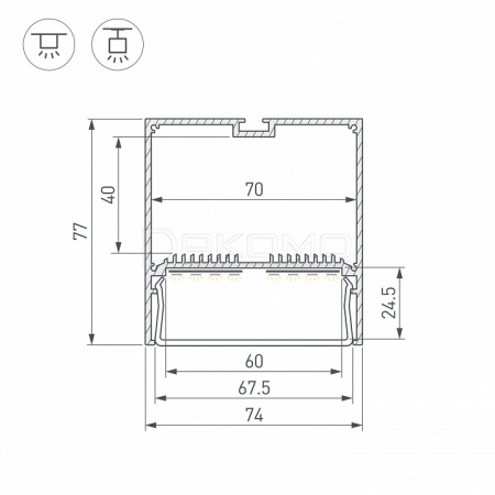 - Д:2000 x Ш:74 x В:77