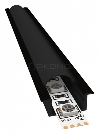 Алюминиевый профиль для светодиодной ленты 08-02-Ч по своей конструкции является встраиваемым, что позволяет встраивать профиль со светодиодной лентой в различные пазы и ниши, а декоративные фланцы прикроют края пазов, скрывая изъяны и создавая безукоризненный внешний облик. Для более крупных моделей профиля можно приобрести дополнительные крепежные пружины, чтобы сделать конструкцию еще надежнее. Данная модель алюминиевого профиля имеет размер 22х6х2000мм, и внутри него можно разместить светодиодную ленту шириной до 10мм. В алюминиевый профиль уже установлен рассеиватель черного цвета, изготовленный из светорассеивающего поликарбоната. Такой рассеиватель пропускает 23% светового потока и делает его более мягким и приятным для Ваших глаз, но в то же время не искажает передаваемые оттенки свечения и наиболее часто используется для организации декоративного освещения. Также в комплекте с профилем идут заглушки в количестве 2-х шт. Благодаря дробеструйной обработке профиль идеально гладкий, а нанесенная на поверхность профиля порошковая краска элегантного черного цвета защитит профиль от окисления и поможет подчеркнуть нетривиальный дизайн помещения.