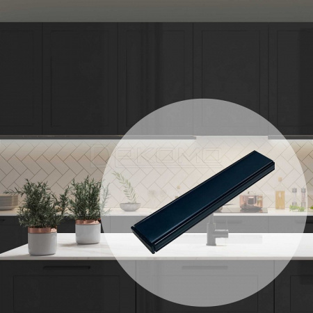 Алюминиевый профиль для светодиодной ленты 08-05-Ч по своей конструкции является накладным, что делает это профиль отличным решением для монтажа на любую плоскую поверхность. Данная модель алюминиевого профиля имеет размер 15,2х6х1000мм, и внутри него можно разместить светодиодную ленту шириной до 10мм. В алюминиевый профиль уже установлен рассеиватель черного цвета, изготовленный из светорассеивающего поликарбоната. Такой рассеиватель пропускает 23% светового потока и делает его более мягким и приятным для Ваших глаз, но в то же время не искажает передаваемые оттенки свечения и наиболее часто используется для организации декоративного освещения. Также в комплекте с профилем идут заглушки в количестве 2-х шт. Благодаря дробеструйной обработке профиль идеально гладкий, а нанесенная на поверхность профиля порошковая краска элегантного черного цвета защитит профиль от окисления и поможет подчеркнуть нетривиальный дизайн помещения.