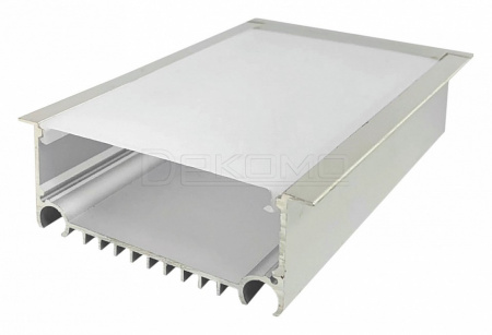 Алюминиевый профиль для светодиодной ленты 08-29 по своей конструкции является встраиваемым, что позволяет встраивать профиль со светодиодной лентой в различные пазы и ниши, а декоративные фланцы прикроют края пазов, скрывая изъяны и создавая безукоризненный внешний облик. Для более крупных моделей профиля можно приобрести дополнительные крепежные пружины, чтобы сделать конструкцию еще надежнее. Данная модель алюминиевого профиля имеет размер 82х32х2000мм, и внутри него можно разместить светодиодную ленту шириной до 48мм. В алюминиевый профиль уже установлен рассеиватель белого цвета, изготовленный из светорассеивающего поликарбоната. Такой рассеиватель пропускает 70% светового потока и делает его более мягким и приятным для Ваших глаз, благодаря чему наиболее часто используется для решения и декоративных задач, и задач по организации основного освещения. Также в комплекте с профилем идут заглушки в количестве 2-х шт. Благодаря дробеструйной обработке профиль имеет приятную матовую поверхность, а анодирование сохранит благородный серебристый цвет, защищая профиль от окисления и создавая атмосферу, способствующую гармонии.