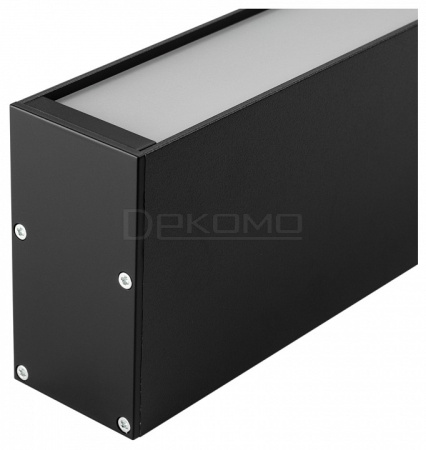 Комплект с экраном. Алюминиевый профиль для светодиодных лент и линеек. Цвет - черный RAL9005 (порошковая окраска). Ширина площадки для ленты 32 мм. Отсек для БП 30х32мм. Заглушки в комплекте (4 заглушки черного цвета, 16 шурупов). Аксессуары приобретаются отдельно.