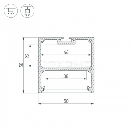 Комплект с экраном. Алюминиевый профиль для светодиодных лент и линеек. Цвет - черный RAL9005 (порошковая окраска). Ширина площадки для ленты 38 мм. Отсек для БП 46х22мм. Крепления и подвесы приобретаются отдельно.