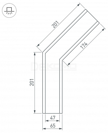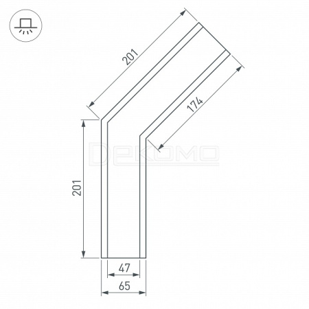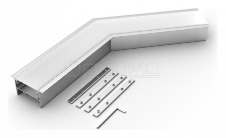 Угол в сборе, для профиля SL-LINIA65-F. 135°. В комплекте угол с экраном, соединители, винты, шестигранный ключ.