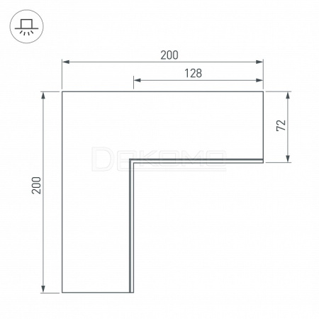 Угол в сборе, для профиля SL-LINIA55-FANTOM. Свечение внутрь. В комплекте угол с экраном, соединители, винты, шестигранный ключ.