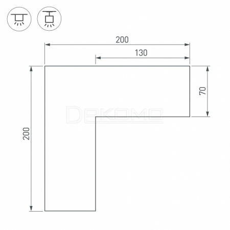 Угол в сборе, для профиля SL-LINE-6070. Свечение наружу. В комплекте угол с экраном, соединители, винты, шестигранный ключ.