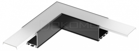 Прямой угол в сборе для соединения 2-х профилей PLS-LOCK-H25 BLACK под прямым углом 90°. Анодирование в черный цвет. Экран образует линию на плоскости. В комплекте матовый экран (арт.019189), соединители.