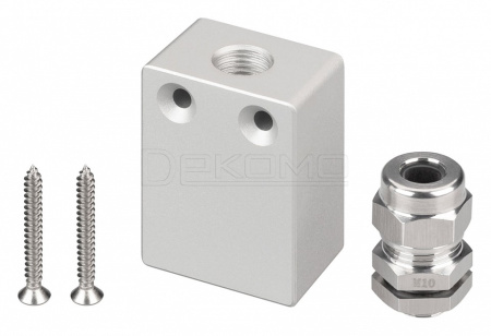 Заглушка для профиля WPH-FLOOR27-H28 с отверстием в нижней части заглушки. Гермоввод для кабеля в комплекте.
