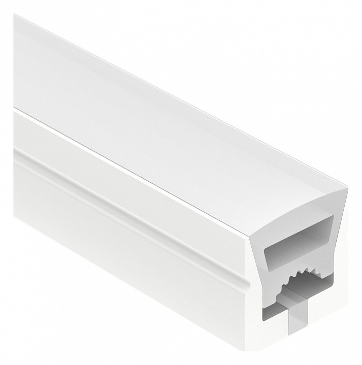 Цельнолитой силиконовый гибкий профиль, белый матовый. Гнется в плоскости. Для установки во влажных помещениях необходима герметизация при помощи двухкомпонентного эпоксидного герметика. Класс пылевлагозащиты – IP65 (при соблюдении технологии герметизации). Для лент шириной от 6 до 8 мм, высотой до 3 мм и мощностью до 10 Вт/м. Поставляется в катушках по 20 м.