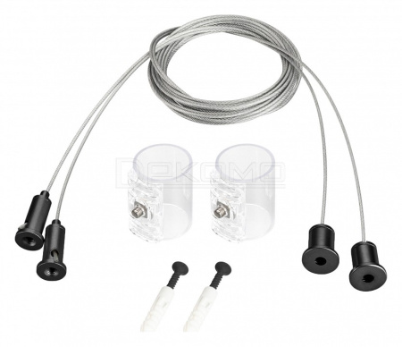 Горизонтальный подвес (в комплекте 2шт.) для герметичной ленты MOONLIGHT-D25. Цвет чёрный. Длина (max - 2м) регулируется, подходит для любых потолочных поверхностей. Совместимо с боковым выводом кабеля (SIDE) ленты. Свободное размещение креплений на ленте.