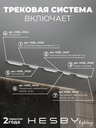 Трековая система со светильниками №5 однофазная накладная Skylite HSBL_kompl_S005_NI2W4K (220В, форма - прямая, 2м, 4000K), белая