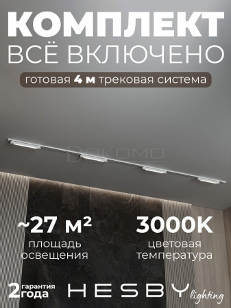 Трековая система со светильниками №1 однофазная накладная Skylite HSBL_kompl_S001_NI4W3K (220В, форма - прямая, 4м, 3000K), белая