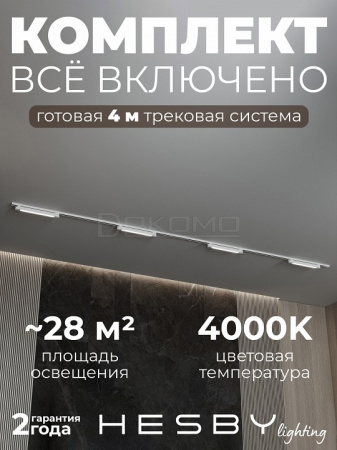 Трековая система со светильниками №1 однофазная накладная Skylite HSBL_kompl_S001_NI4W3K (220В, форма - прямая, 4м, 3000K), белая