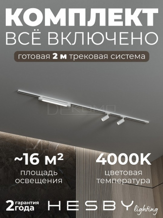 Трековая система со светильниками №1 однофазная накладная Skylite HSBL_kompl_S001_NI2W4K (220В, форма - прямая, 2м, 4000K), белая