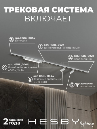 Трековая система со светильниками №5 однофазная накладная Skylite HSBL_kompl_S005_NI2W3K (220В, форма - прямая, 2м, 3000K), белая