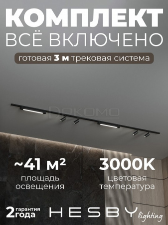 Трековая система со светильниками №5 однофазная накладная Skylite HSBL_kompl_S005_NI3B3K (220В, форма - прямая, 3м, 3000K), черная