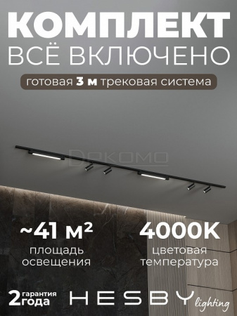 Трековая система со светильниками №5 однофазная накладная Skylite HSBL_kompl_S005_NI3B4K (220В, форма - прямая, 3м, 4000K), черная