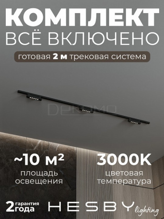 Трековая система со светильниками №1 однофазная накладная Skylite HSBL_kompl_S001_NI2B3K (220В, форма - прямая, 2м, 3000K), черная