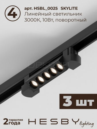 Трековая система со светильниками №5 однофазная накладная Skylite HSBL_kompl_S005_NI3B3K (220В, форма - прямая, 3м, 3000K), черная