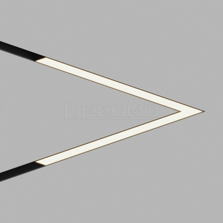 Трековый линейный светильник ElDeko HSBL_0234. Лаконичное и технологичное решение для современного трекового освещения. Светильник ElDeko HSBL_0234 выполнен в виде прямого угла 90 градусов, что позволяет ему монтироваться на стыке двух магнитных шинопроводов, соединённых перпендикулярно. Такая конструкция создаёт непрерывную, геометрически безупречную световую линию в углах помещения, подчёркивая архитектурные особенности пространства. Корпус светильника выполнен в стильном матово-чёрном цвете и отличается предельно минималистичным дизайном — на шинопроводе он выглядит как цельная, завершённая деталь без видимых креплений и лишних элементов. Светильник излучает комфортный тёплый белый свет с температурой 3000К.