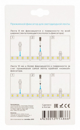 Преимущества:Облегчает монтаж светодиодной ленты; Может использоваться со светодиодной лентой 12/24 В; Подходит к светодиодной ленте с шириной подложки 8 и 10 мм. тип светодиодной ленты, smd: все типы