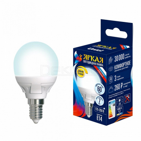 Лампа светодиодная Яркая Dim E14 175-250В 7Вт 4000K UL-00004294