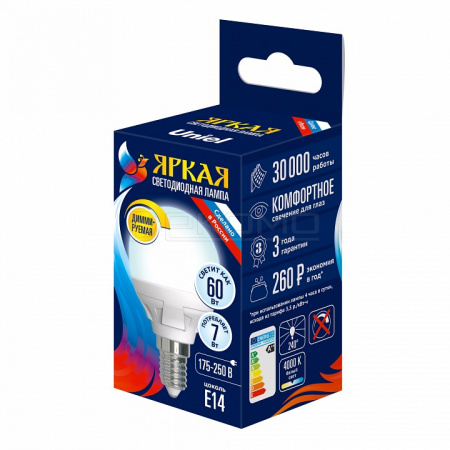 Лампа светодиодная Яркая Dim E14 175-250В 7Вт 3000K UL-00004710