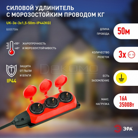 Удлинитель UK-3e-3x1,5-50m-IP44(KG)