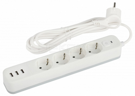 Удлинитель с выключателем USF-4es-1,5m-3xUSBA-W