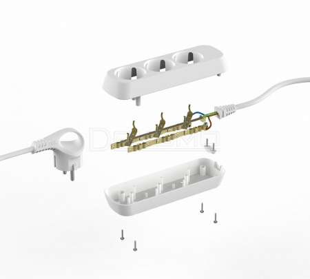 - провод электропитания с вилкой с заземлением длиной 5 м, 3 розетки с заземлением