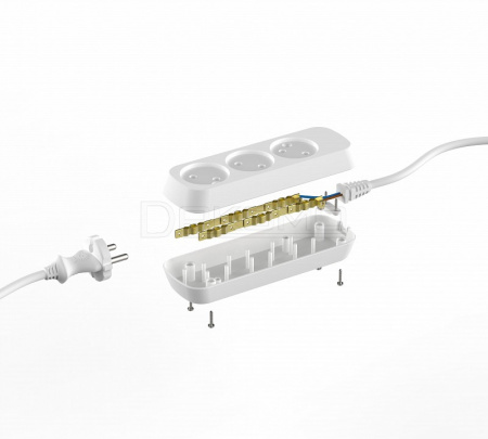 - провод электропитания с вилкой без заземления длиной 5 м, 3 розетки без заземления