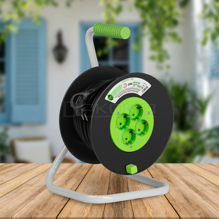 - провод электропитания с вилкой с заземлением длиной 30 м, 4 розетки с заземлением