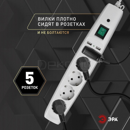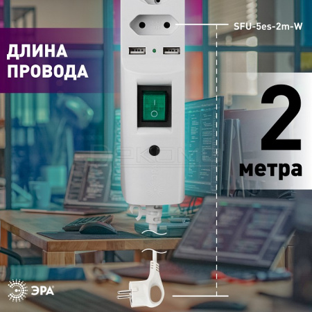 - провод длиной 2 м., розетки с заземлением - 5 шт., 2 USB-порта