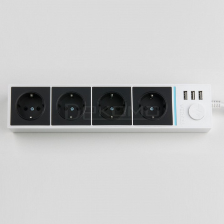 Розеточный блок 4-х местный + 3 USB белый WL20-04-03