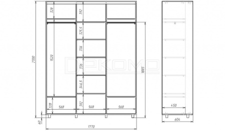 - Ш:1770 x Г:600 x В:2300