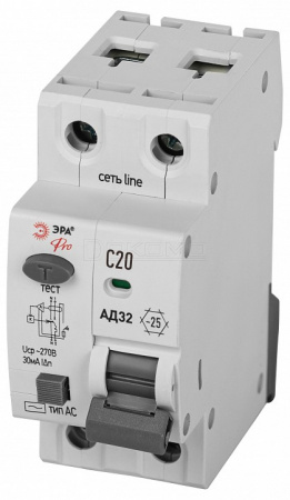Дифференциальный автоматический выключатель электронный 1P+N АД-32 D32E2C20АC30P