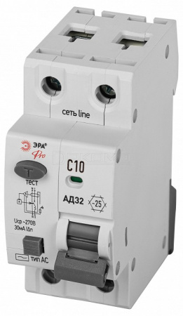 Дифференциальный автоматический выключатель электронный 1P+N АД-32 D32E2C10АC30P