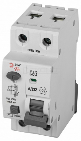 Дифференциальный автоматический выключатель электронный 1P+N АД-32 D32E2C63АC100P