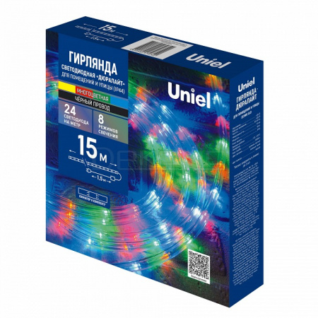 Светодиодная гирлянда-дюралайт ULD-D50 15M/С08 IP44 MULTI от Uniel — это яркое и динамичное решение для создания праздничной атмосферы. Гибкая светодиодная лента длиной 15 метров с разноцветным свечением и 8 режимами работы станет настоящим украшением любого пространства. Черный провод обеспечивает элегантный внешний вид и универсальность в применении.