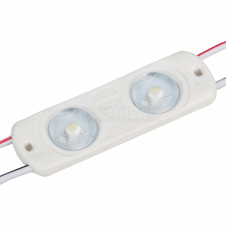 Герметичный светодиодный модуль IP65, БЕЛЫЙ 6500–7000 К, напряжение 12 В, мощность 0.8 Вт, св. поток 80 лм, 2 светодиода SMD 2835, угол 170°. 20 шт на проводе, расстояние между центрами модулей 157 мм, длина провода между модулями 100 мм, рекомендуемая глубина установки 40–100 мм. Размер 56х17.5х6.2 мм. Гарантия 5 лет. Высокая световая эффективность.