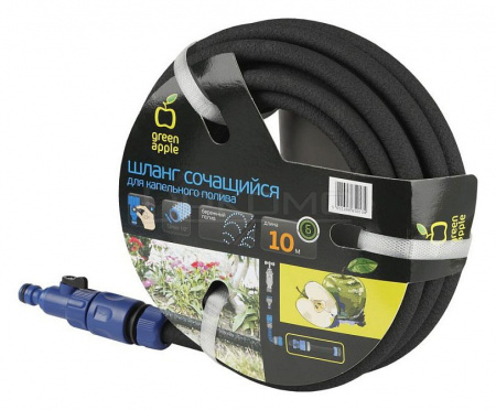 Сочащийся шланг GREEN APPLE предназначен для наземного размещения и позволяет осуществлять равномерный и экономичный полив растений. Снабжен комплектом для подключения и регулятором подачи воды.