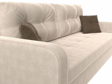 Прямой диван «Ливерпуль Лайт» производства компании «Лига Диванов» - отличный вариант для тех, кто хочет совместить интересный дизайн, практичность и удобство. Будучи являясь современным раскладным диваном с прочным каркасом из бруса и ЛДСП, «Ливерпуль Лайт» прекрасно впишется в интерьер как жилой комнаты, так и офиса. В качестве варианта для сна модель «Ливерпуль Лайт» тоже отлично подойдет. Две большие мягкие съемные подушки дополняют спинку изделия, а прямые мягкие подлокотники и две декоративные подушки обеспечат удобство и комфорт. Под сиденьем расположен вместительный ящик для белья. Устойчивость и надежность конструкции обеспечивают пластиковые крепкие ножки.