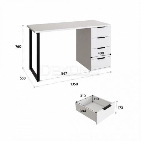 Стол письменный С-402 позволит создать комфортное и стильное рабочее пространство в офисе или домашнем кабинете. Стол С-402 можно использовать в качестве маникюрного стола. Стол имеет прочную стальную опору и тумбу с четырьмя выдвижными ящиками. Столешница изготовлена из ЛДСП 25 мм, фасады МДФ 16 мм. Дно ящика двп 3 мм. Стол может быть собран в зеркальном варианте «правым» или «левым». Фурнитура: телескопические направляющие полного выдвижения без доводчиков, ручки и опора металл.
