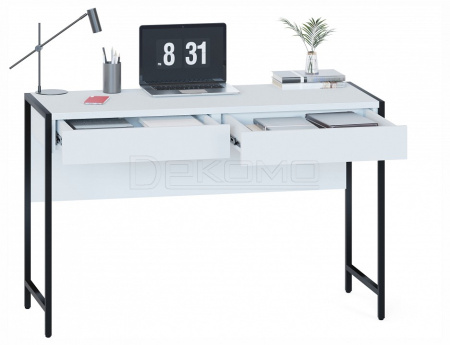 Письменный стол в стиле лофт СПМ-402— оптимальное решение для тех, кому нужно организовать полноценное рабочее место, используя пространство максимально эффективно. Уникальными особенностями модели являются металлические опоры с регулируемыми подпятниками и столешница толщиной 22 мм с противоударной кромкой. Два выдвижных ящика с шариковыми направляющими обеспечивают плавное бесшумное открывание и легкий доступ ко всем необходимым документам для работы.